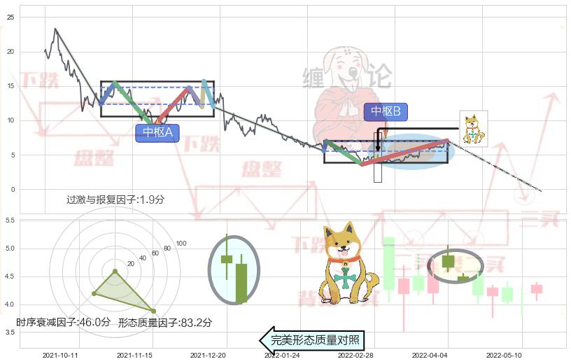 ➢ 下跌孤独十字星 🔜 缠论中枢点破位中枢B支撑下拉 综合量化分数:47.83 【中性】