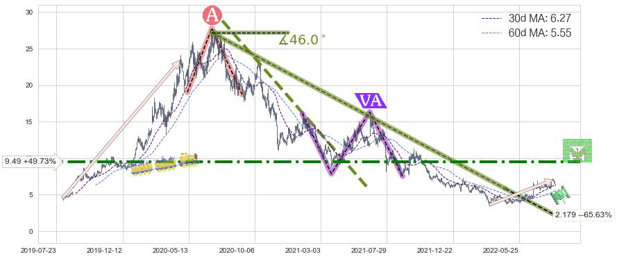 ♘ 阻力价格位9.49,可信任强度79.43%,距离最后交易2022-08-12形成的收盘价格6.34相差 +49.73%