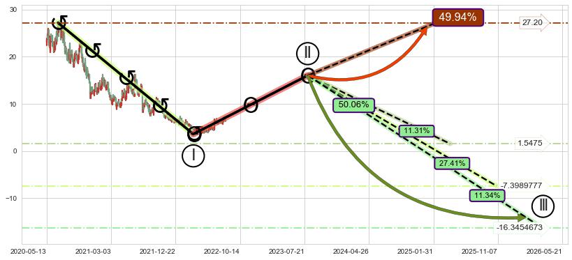 ➣ 大趋势循环浪继续向下概率50.06%