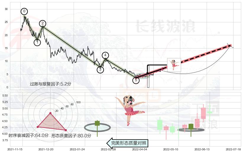 从2020-07-03至2022-04-22,共包含445个交易日,阶段股价下跌-139.03%,阶段股价变动位移路程比: 1 : 10,下跌趋势角度: 46.0