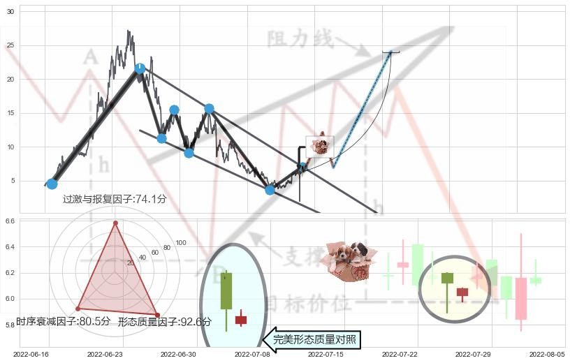 ➢ 🕰 价格走势在2022-07-07至2022-07-08期间形成双针探底,残存影响值:3.93