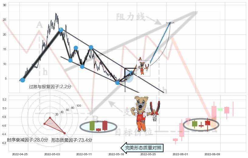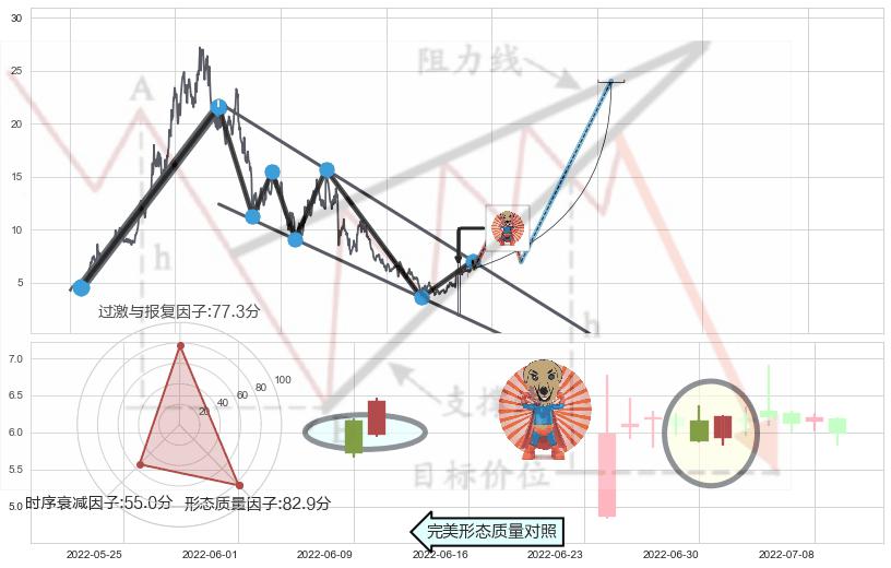 ➢ 🕰 价格走势在2022-06-22至2022-06-23期间形成中流砥柱形态,残存影响值:1.93
