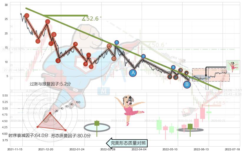 从2020-07-29至2022-04-04,共包含417个交易日,阶段股价下跌-118.45%,阶段股价变动位移路程比: 1 : 11,下跌趋势角度: 52.6