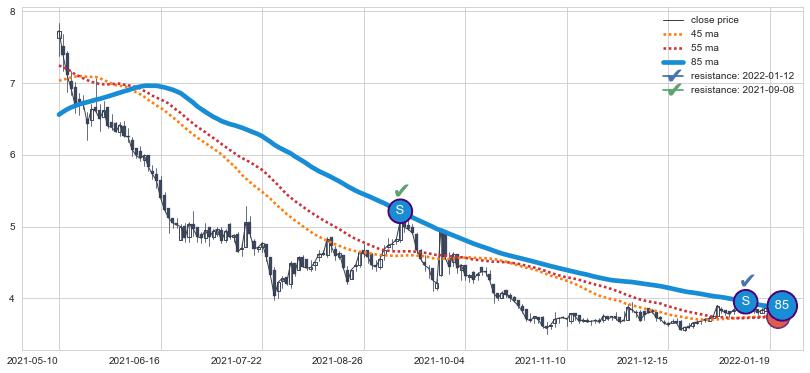 ➣ 55小时均线于(2022-03-10: 3.774)形成【死叉】基于【死叉历史模型】预测死叉后最低波谷价格: 3.451, 死叉后最低价格2.630,已经下跌超出预测最低波谷价格, 预期反弹