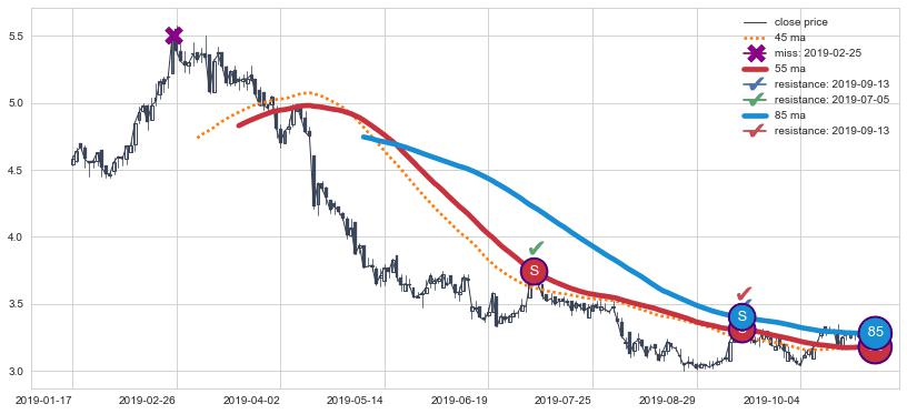📝 多条均线形成死叉后走势最低价格达到: 2.630