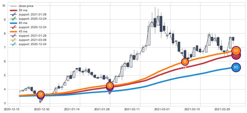👍 尚未达到多条均线预测的最高波峰价格的平均值, 预期继续上涨