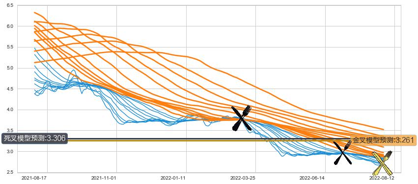 ➢ 60小时均线于(2022-03-11: 3.766)形成【死叉】基于【死叉历史模型】预测死叉后最低波谷价格: 3.436, 死叉后最低价格2.630,已经下跌超出预测最低波谷价格, 预期反弹