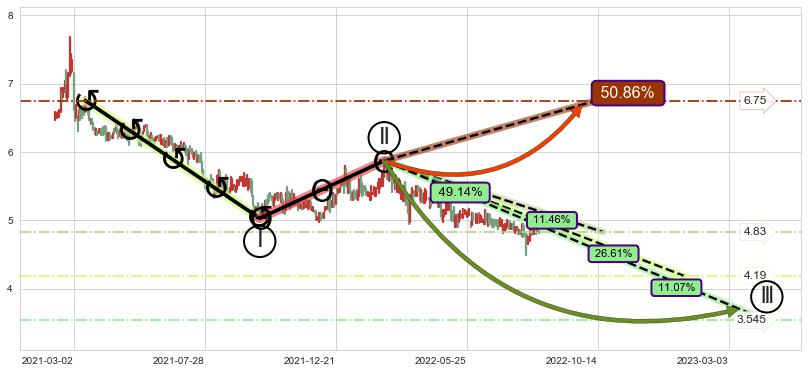 ➣ 2021-03-05到达第❷价格目标位置6.45