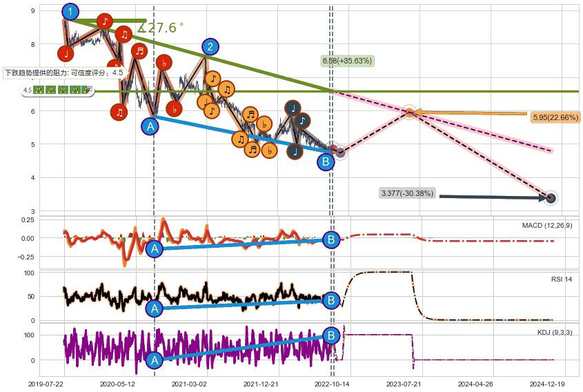 ♘ 阻力价格位5.63,可信任强度88.27%,距离最后交易2022-08-12形成的收盘价格4.85相差 +16.02%