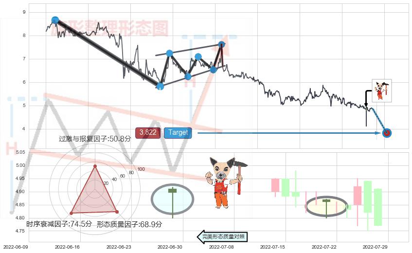 ➢ 🕰 价格走势在2022-07-21至2022-07-21期间形成锤头线(锤子线),残存影响值:4.90