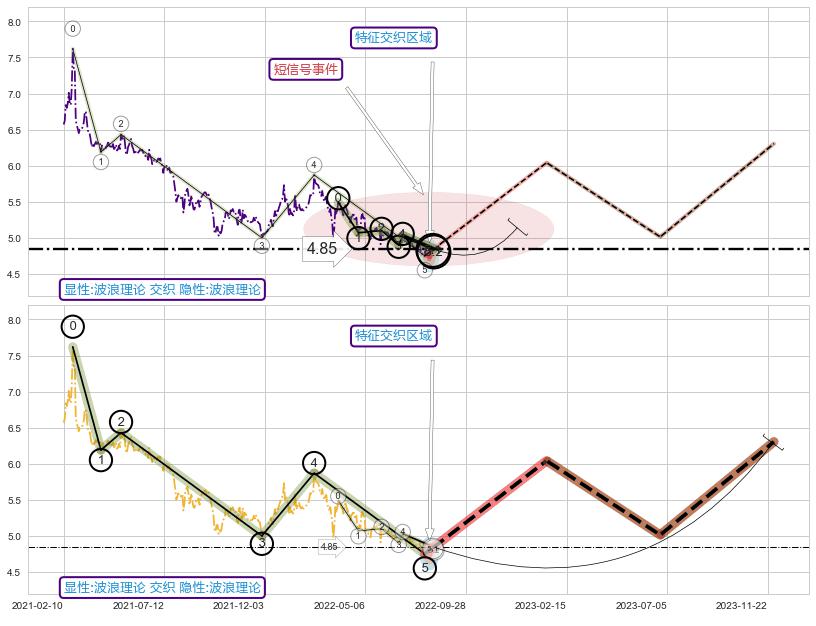 ➣ 5.1: 预测当前第5浪位置(2022-08-12, 4.85),仍然有下跌空间