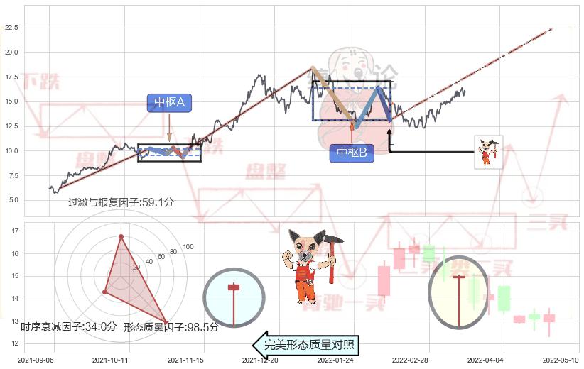 ➣ 【中枢B】:2021-10-15-2022-03-15,中枢由4笔构成,共104交易日, ZG=16.38, ZD=13.12