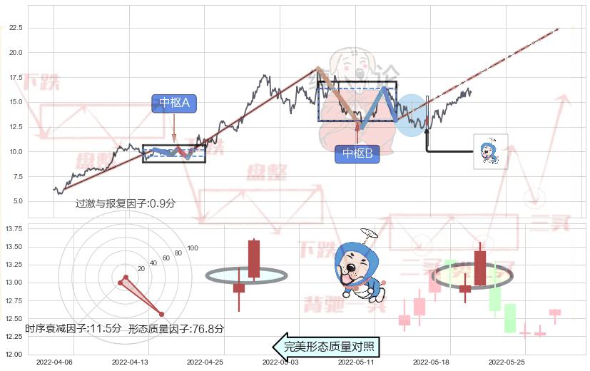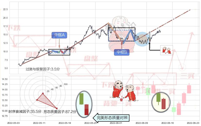 ➣ 上涨螺旋桨形态 + 缠论中枢点突破中枢B阻力拉升信号叠加后【目标达成率】中等,【看多】信号叠加【存续影响中等】