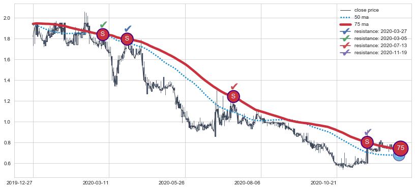 ➣ 75小时均线于(2022-06-14: 0.8520)形成【金叉】基于【金叉历史模型】预测金叉后最高波峰价格: 1.2083, 金叉后最高价格0.9600,尚未达到预测最高波峰价格, 预期继续上涨