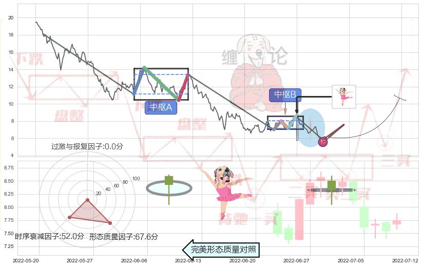 ➣ 【中枢B】:2022-05-27-2022-06-28,中枢由4笔构成,共22交易日, ZG=8.02, ZD=7.14