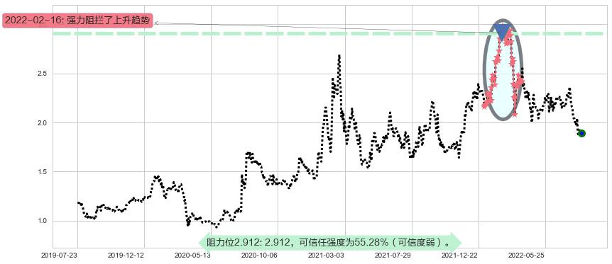 ♘ 阻力价格位2.240,可信任强度74.44%,距离最后交易2022-08-12形成的收盘价格1.8900相差 +18.50%