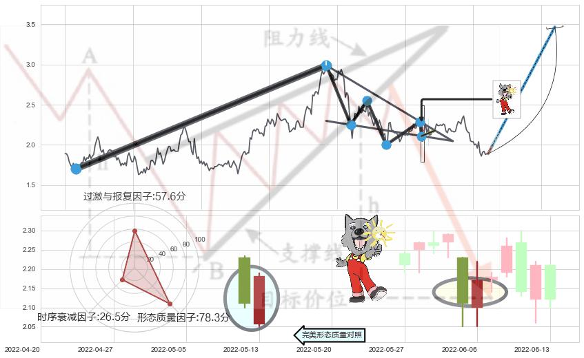 ➢ 【买1】: 激进型 买点 →(2022-06-17: 2.178 )形成突破降🚩楔型【整理】形态