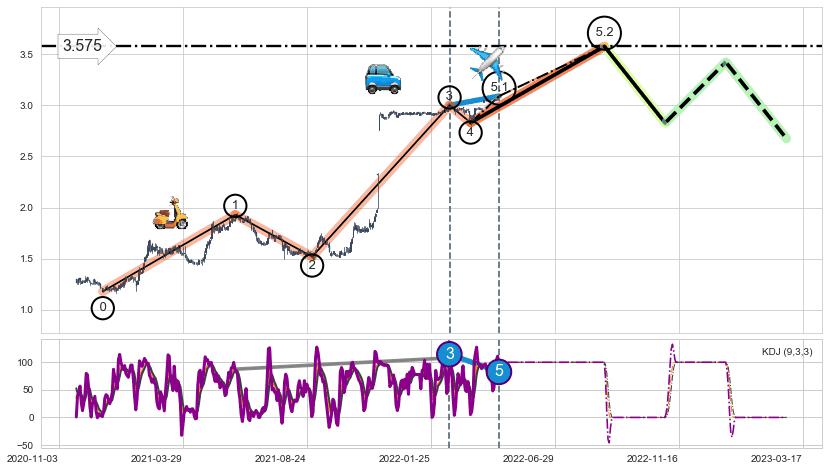 ➣ 5.1: 预测当前第5浪位置(2022-04-27, 3.090),仍然有上升空间