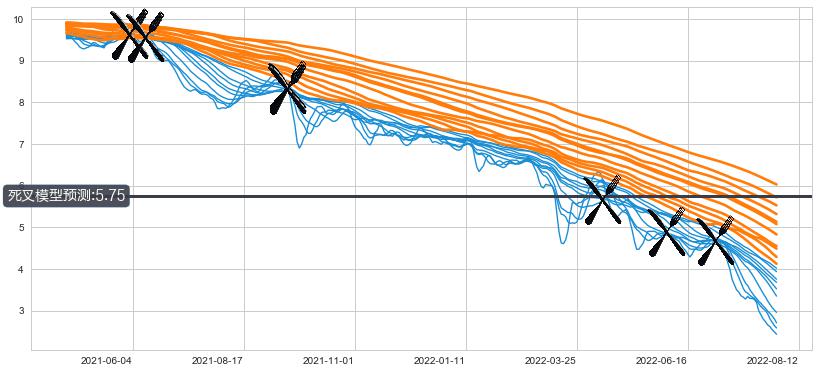 📉 多条均线基于【死叉历史模型】预测最低波谷价格的平均值: 5.75