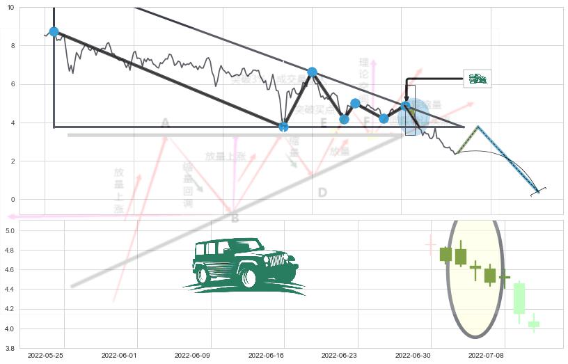 2022-06-14: 第一阻力位3.962有效抑制了下跌浪,成功阻止了价格的继续下跌。