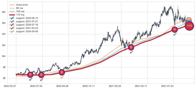 📝 多条均线形成死叉后走势最低价格达到: 82.70