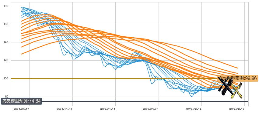 ➣ 40小时均线于(2022-07-26: 91.47)形成【死叉】基于【死叉历史模型】预测死叉后最低波谷价格: 76.81, 死叉后最低价格82.70,尚未达到预测最低波谷价格, 预期继续下跌