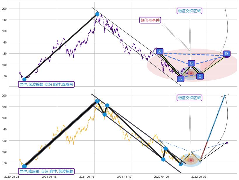 ➢ 谐波蝙蝠属【短级别信号事件】降旗形属【长级别信号事件】长短周期组合信号事件, 短长事件长度比26.37%