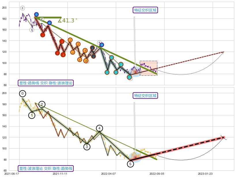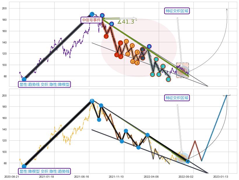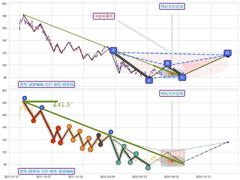 ➣ D点拟合预测价格116.01,距离最后交易收盘价格87.40相差 +32.74%