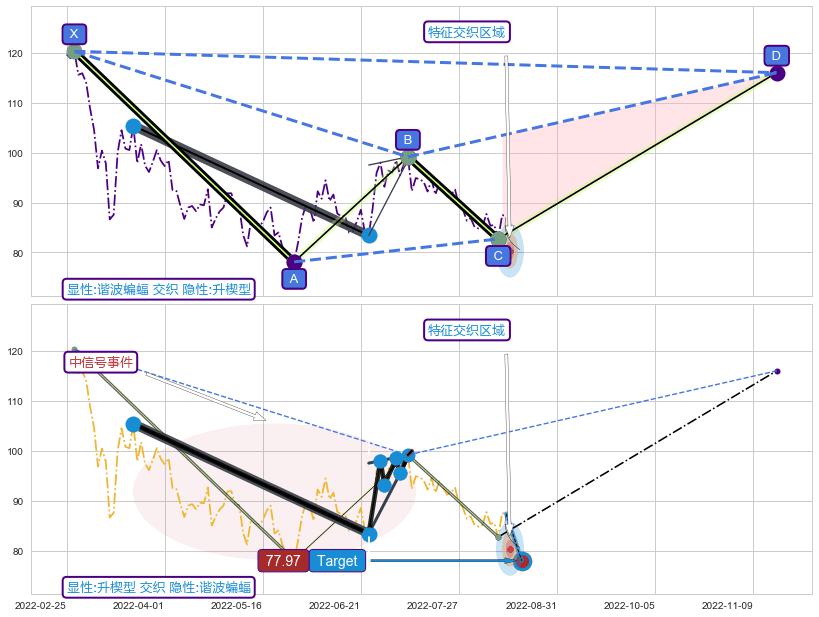 ➢ 升楔型属【中级别信号事件】谐波蝙蝠属【长级别信号事件】中长周期组合信号事件,中长事件长度比64.86%