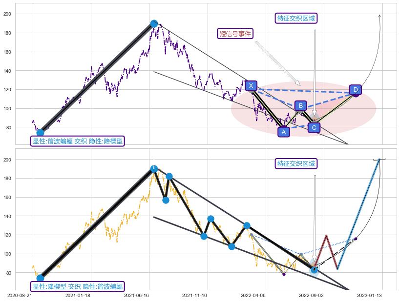 ➢ 谐波蝙蝠属【短级别信号事件】降楔型属【长级别信号事件】长短周期组合信号事件, 短长事件长度比23.52%