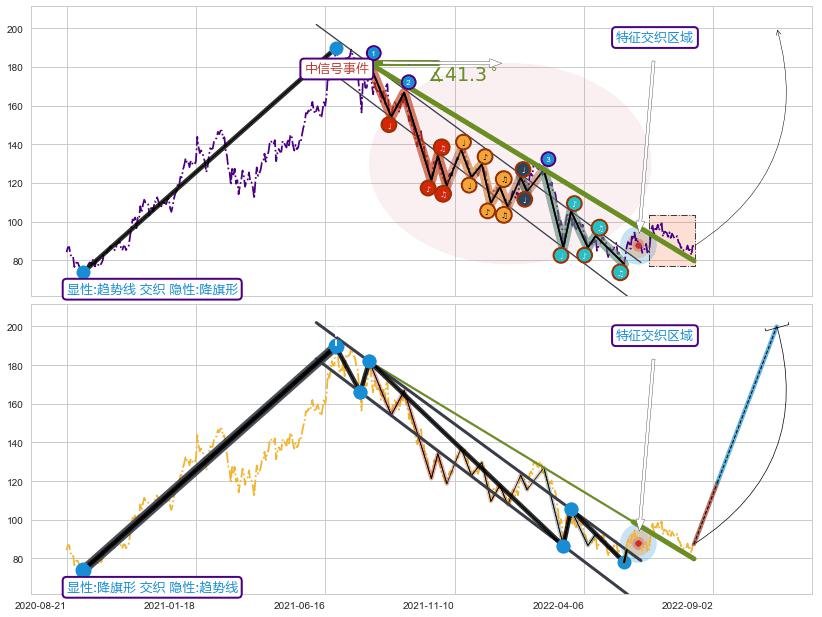 ➢ 趋势线属【中级别信号事件】降旗形属【长级别信号事件】中长周期组合信号事件,中长事件长度比51.78%