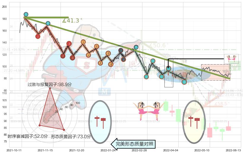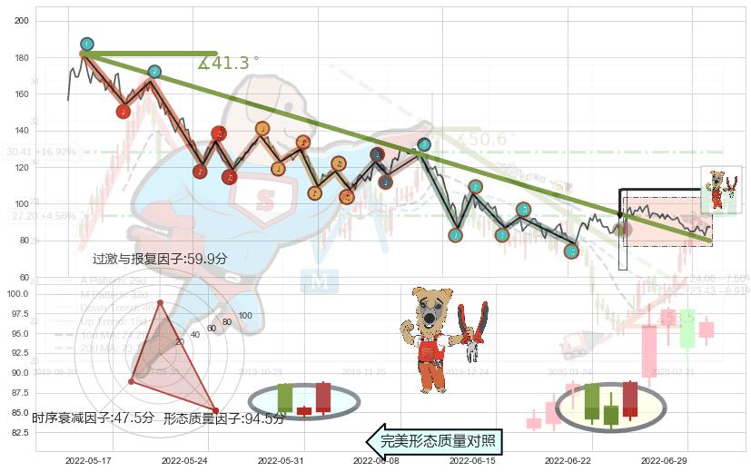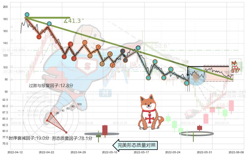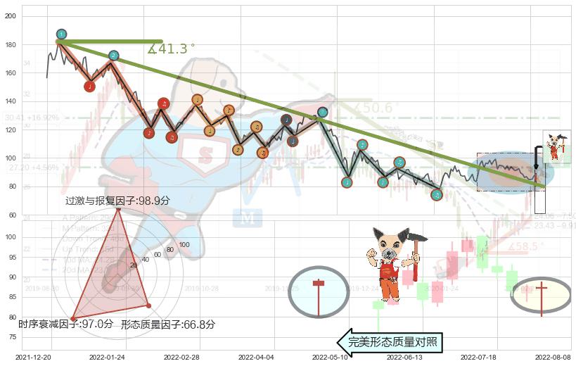 从2021-08-04至2022-06-07,共包含205个交易日,阶段股价下跌-59.28%,阶段股价变动位移路程比: 1 : 8,下跌趋势角度: 41.3
