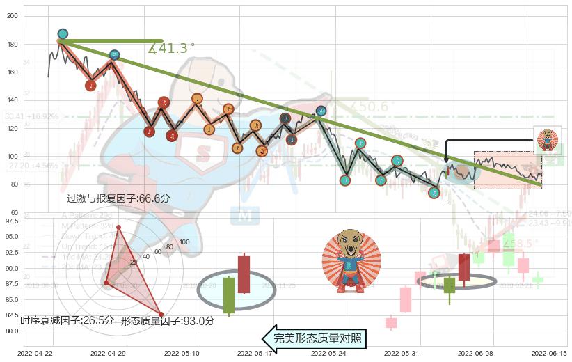 ➢ 🕰 价格走势在2022-06-16至2022-06-22期间形成下降三部曲(降势三鹤),残存影响值:-4.35