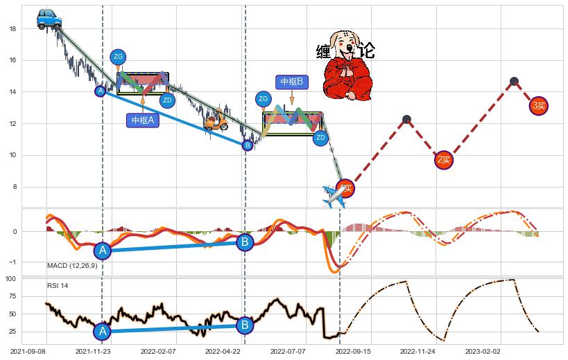 ➣ 【未完成】缠论 起点:2021-09-08, 完成第1中枢A,完成第2中枢B,到达2022-08-12