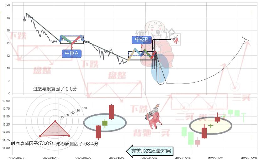 ➢ 【中枢B】:2022-05-19-2022-07-22,中枢由6笔构成,共45交易日, ZG=12.58, ZD=12.00