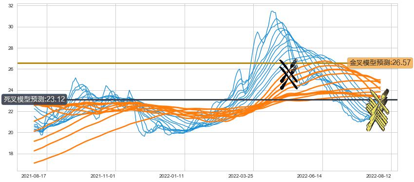 ➣ 45小时均线于(2022-08-10: 22.25)形成【金叉】基于【金叉历史模型】预测金叉后最高波峰价格: 27.16, 金叉后最高价格23.20,尚未达到预测最高波峰价格, 预期继续上涨