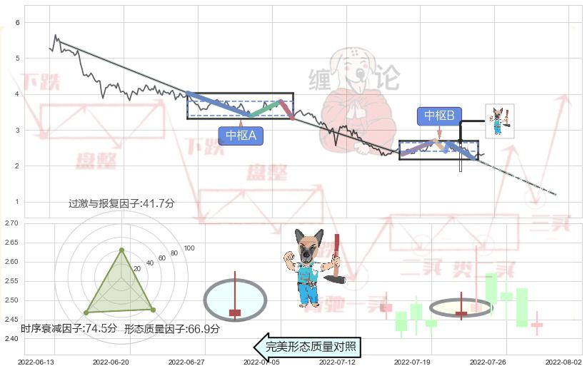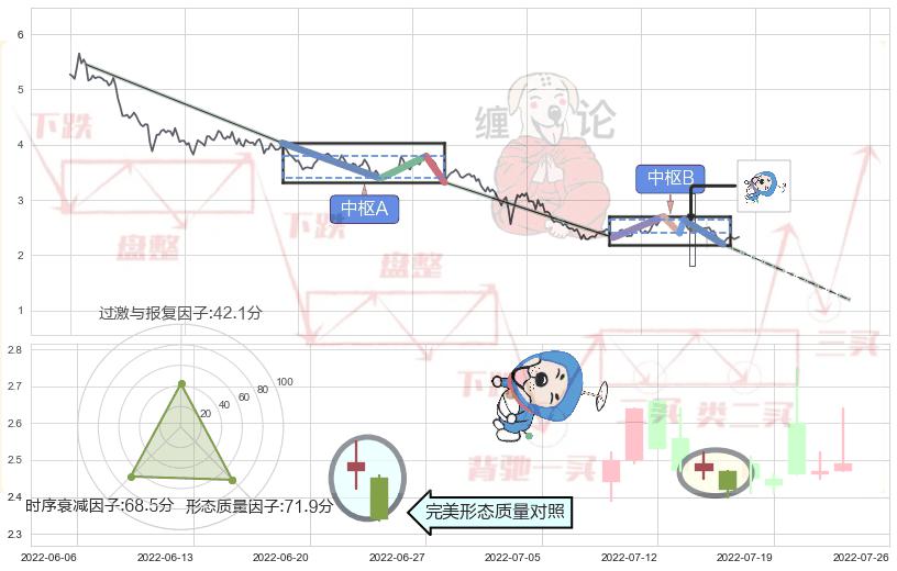 ➢ 下跌孕十字星 🔜 缠论中枢点破位中枢B支撑下拉 综合量化分数:46.30 【中性】