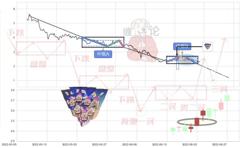 ➣ 【中枢B】:2022-05-25-2022-08-03,中枢由5笔构成,共49交易日, ZG=2.640, ZD=2.400