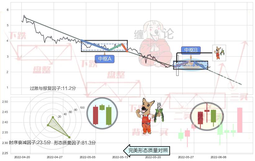 ➢ 下跌镊子线(n形磁铁) 🔜 缠论中枢点破位中枢B支撑下拉 综合量化分数:46.82 【中性】