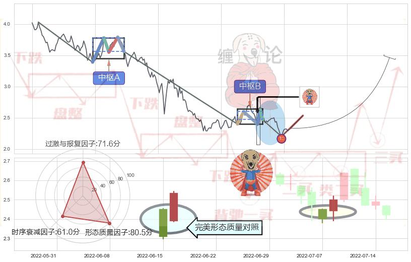 ➣ 【中枢B】:2022-06-14-2022-07-13,中枢由5笔构成,共21交易日, ZG=2.600, ZD=2.470