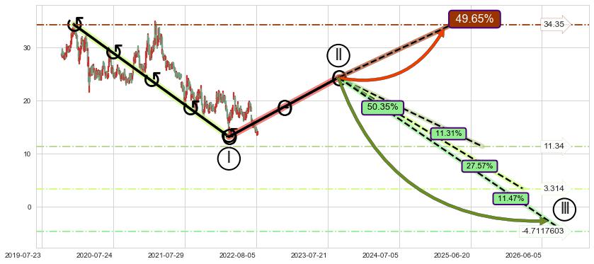 ➣ 大趋势循环浪继续向下概率50.35%