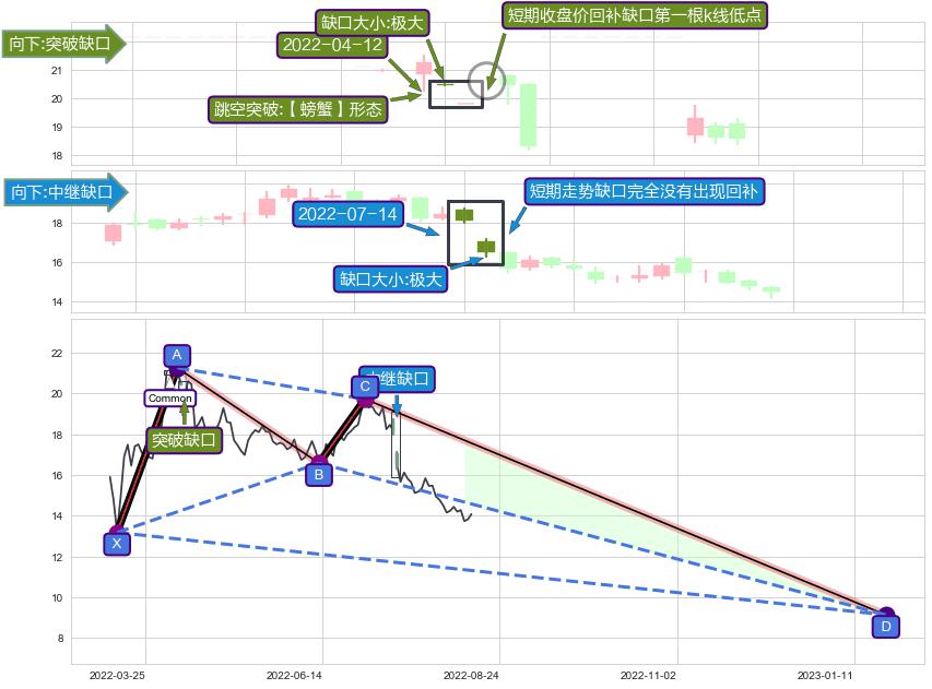 ➢ (Common ⥥ 【螃蟹】形态) 🔜 中继缺口 🔜 突破缺口 综合量化分数:40.00 【偏空】