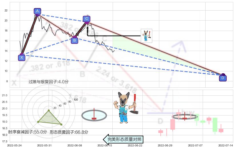 ➢ 射击之星形态 🔜 谐波螃蟹c拐点下跌阻力 综合量化分数:38.20 【偏空】