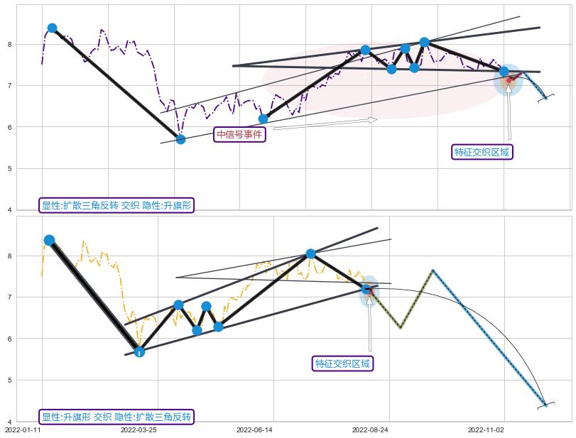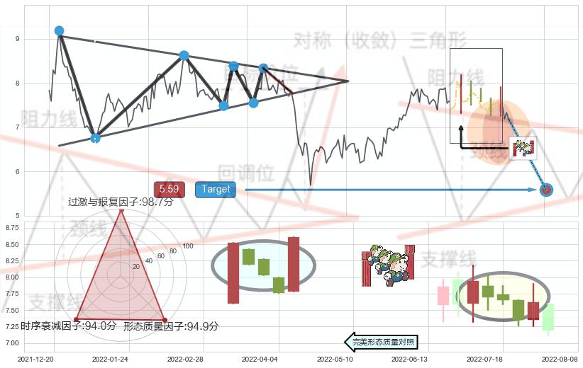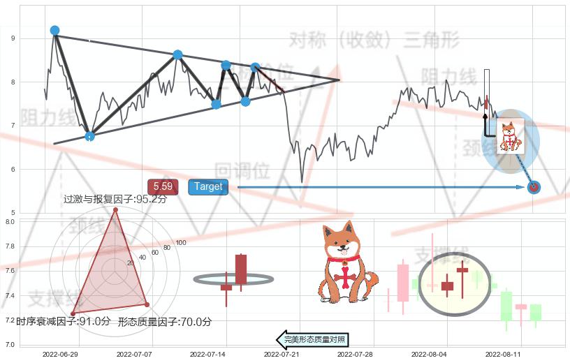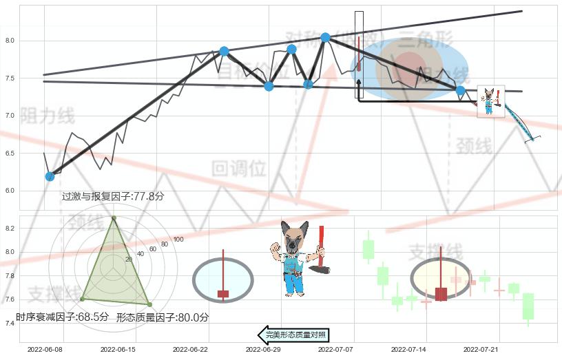 ➢ 【卖1】: 激进型 卖点→(2022-08-10: 7.34 )形成突破【扩散】三角形反转【反转】形态