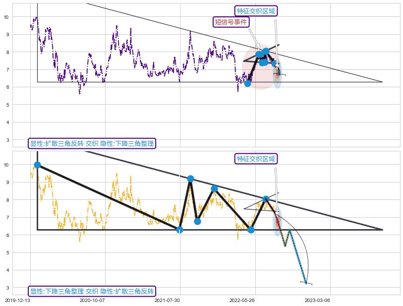 ➢ 扩散三角反转属【短级别信号事件】下降三角整理属【长级别信号事件】长短周期组合信号事件, 短长事件长度比11.62%