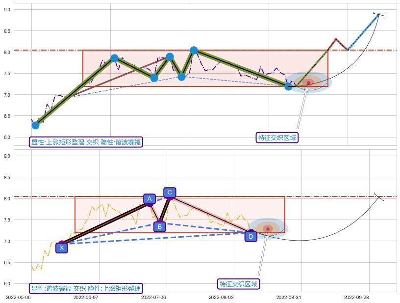 ➢ 上涨矩形整理与谐波赛福信号事件周期长度级别相同,同周期信号事件