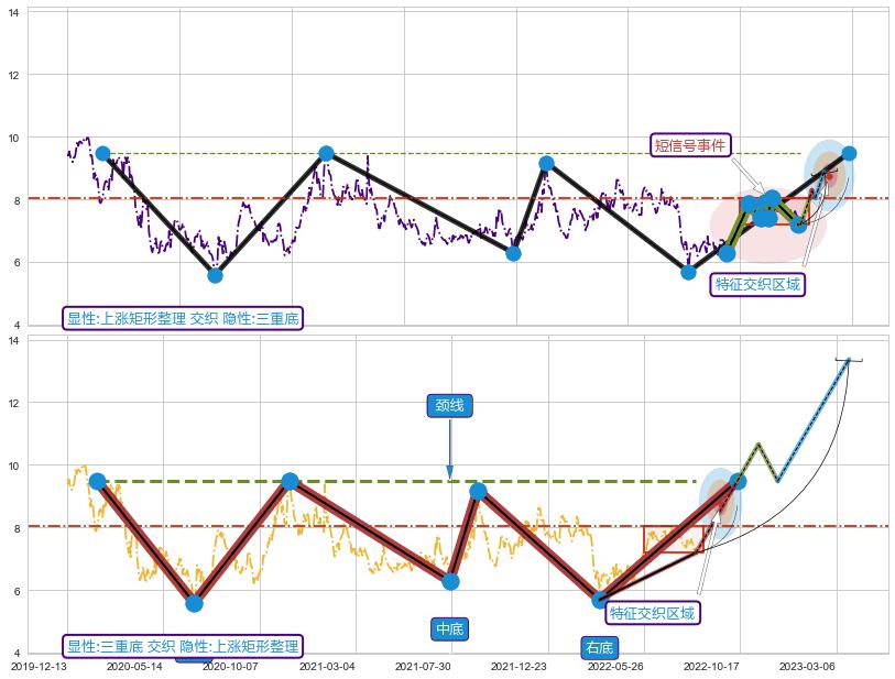 ➢ 上涨矩形整理属【短级别信号事件】三重底属【长级别信号事件】长短周期组合信号事件, 短长事件长度比10.52%