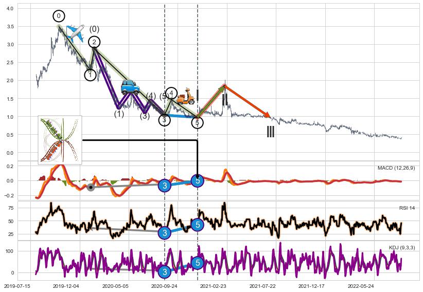 ➣ MACD, RSI, KDJ走势都出现【常规背离】反转信号增强