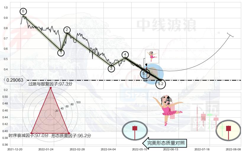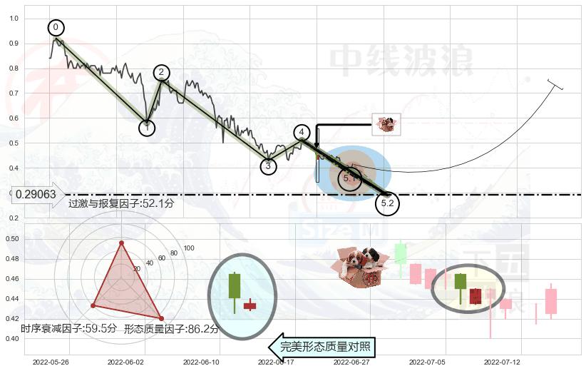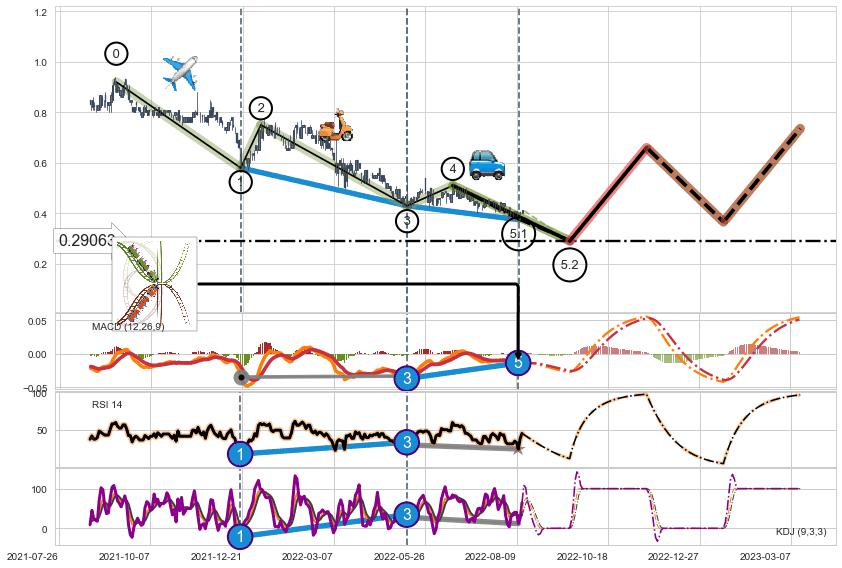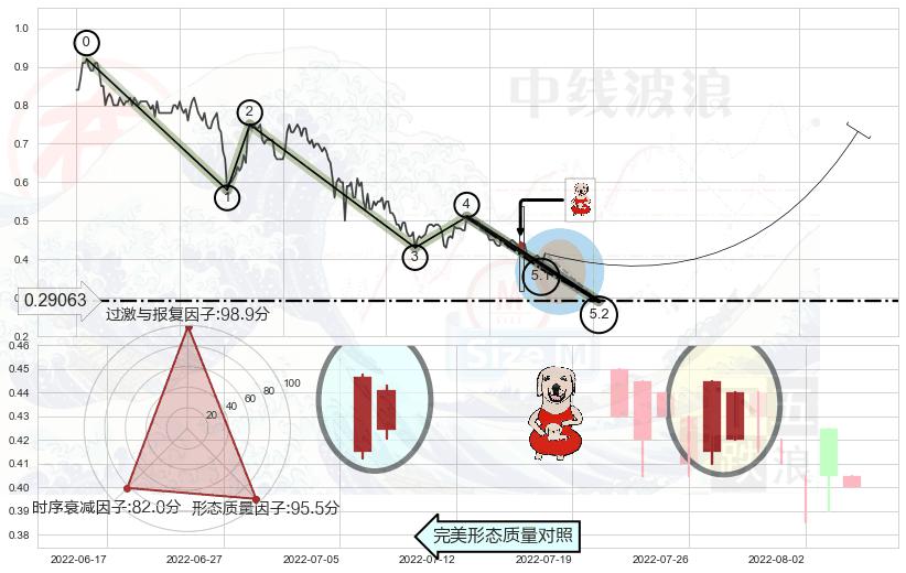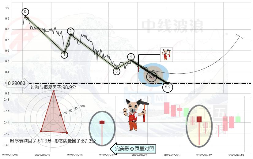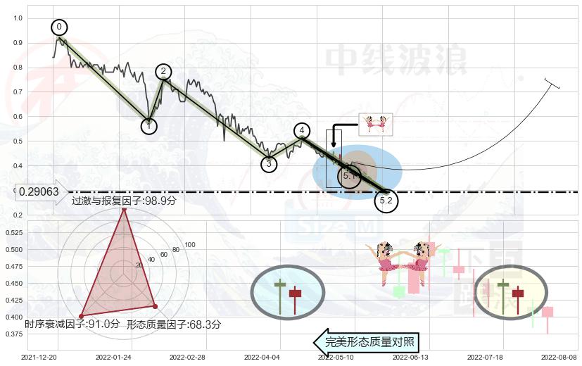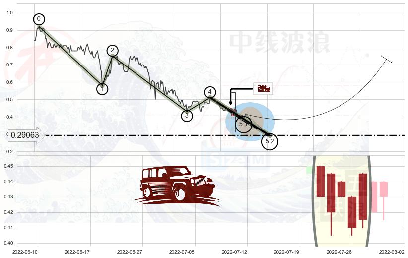 ➣ 5.1: 预测当前第5浪位置(2022-08-10, 0.37500),仍然有下跌空间