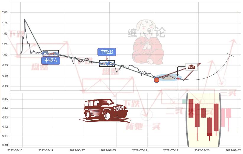 ➣ 缠论买卖点:下降缠中枢AB形成后猜想拐点1买已到达,猜想后续持续拉升(均值回复)